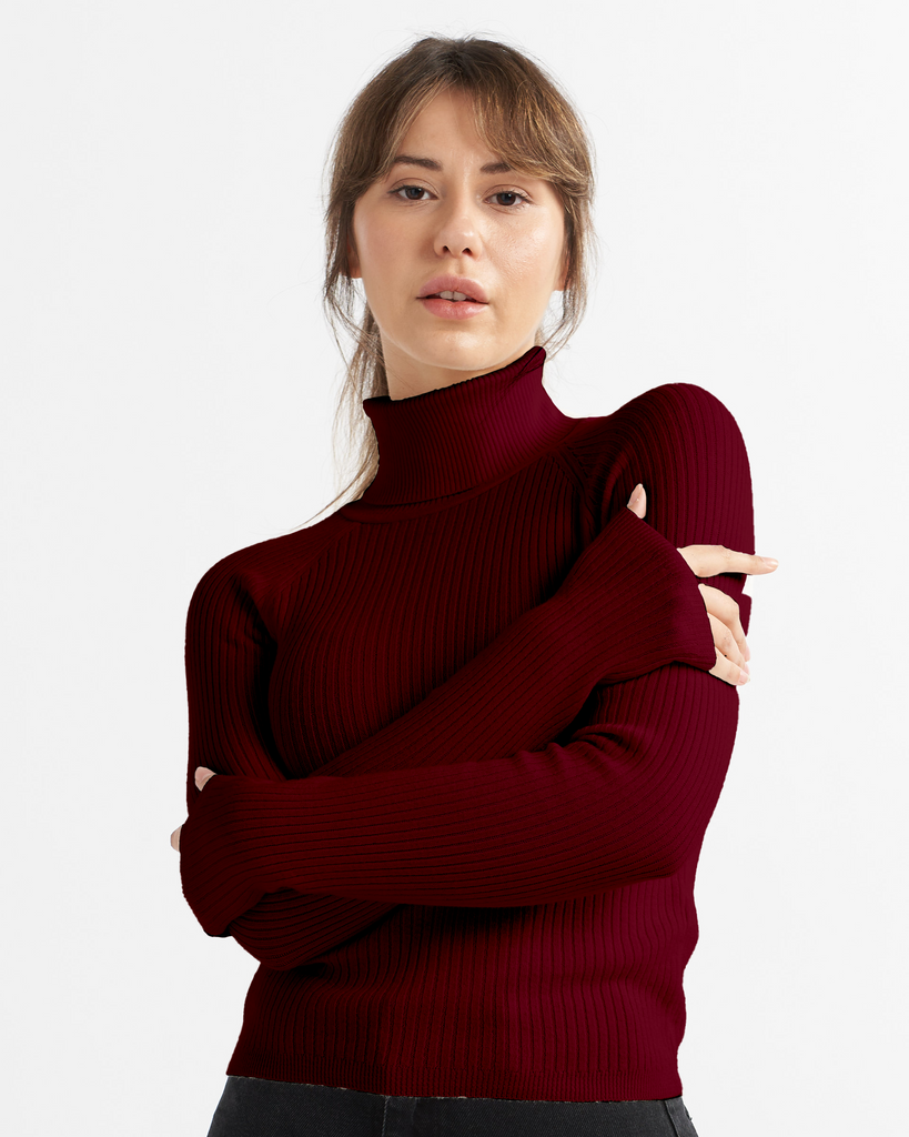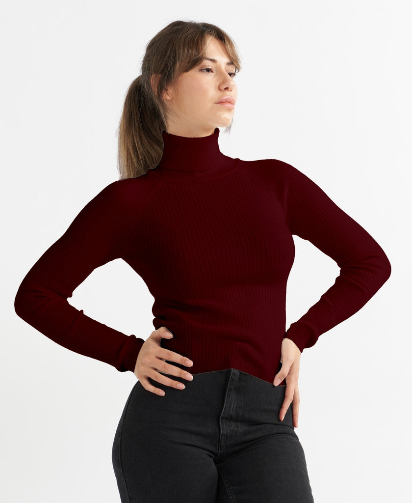 Women Turtle Neck Ribbed Jumper
